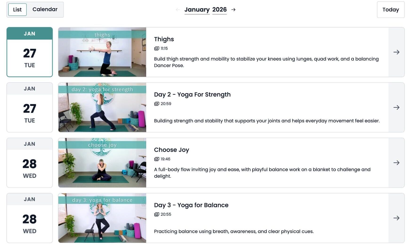 Each class includes clear cues, intentional modifications, and guidance from a certified yoga therapist so you feel supported and confident in your body.